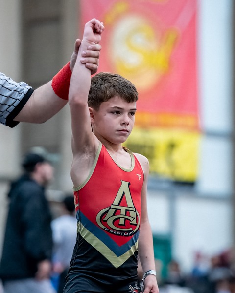| Hunter Bates entered his first wrestling tournament on January 4, 2025, at seven years old, just weeks shy of his eighth birthday. Despite losing his early matches through February, he rededicated himself to the sport. Hunter now trains three to three-and-a-half hours a day, four to five days a week, combining a one-hour private session with two hours of practice. |